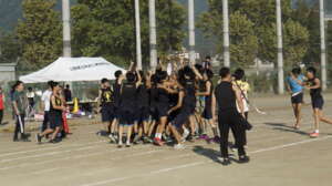 10月9日に五葉祭1日目が開催されました。例年通り、全校生徒が体育館に入り開祭式はクラス旗入場から始まりました。クラス発表は、映像やダンスなど工夫を凝らした発表で盛り上がりました。また、体育祭では、リレーや借り人競争、綱引きなどが行われクラス同士が熱く競い合いました。部活同士での対抗リレーも行われガチ、非ガチともに大変盛り上がりました。