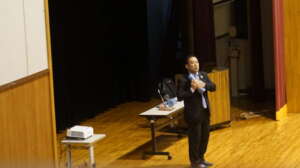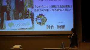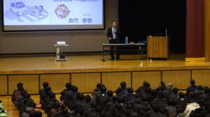 12月24日3校時に、則竹崇智さんにお越しいただき、講演会を行ってもらいました。この講演会では、崇智さんの息子である敬太さんが、運転手のながらスマホによる交通事故で亡くなってしまった実話をもとに、命の大切さについて教えていただきました。全校生徒が真剣に崇智さんのお話を聞き、命の尊さや交通安全の規則を守ることの大切さをよく理解できた講演会になりました。