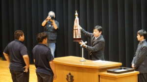2026年 2026年 鏡開き 2026年1月9日 16:54 1月8日に行われた鏡開きは、各クラスの委員長と各部の部長などが出席し、應援團による校歌と応援歌が披露され、校長先生と同窓副会長から激励の言葉を頂きました。また、生徒会長、体育局長、学芸局長から決意表明があり、式後にお雑煮を食べました。今年も... 3学期始業式 2026年1月9日 16:53 1月8日に第3学期始業式を行いました。始業式は、校長先生から新しい年にむけての抱負や心がまえ、馬年に起きた出来事などについてのお話がありました。気持ちを新たに目標を持っていろいろなことに挑戦する年にしたいと思います。 団結餅つき 2026年1月9日 16:53 12月25日に、団結餅つきが行われました。年明けからの団結力を高めるために行われ、各部の部長、生徒会役員、應援團一同が集まり應援激励が披露されたほか、校長先生や同窓副会長、PTA副会長からも激励の言葉をいただきました。餅つきの後には生徒に豚... 表彰式・校納式 二学期終業式 2026年1月9日 16:51 12月25日に表彰式、校納式、第2学期終業式を行いました。表彰式では11月に行われたサッカー大会や10月に行われた強歩大会の表彰を行い、校納式では各部の成果の賞状を納め、全校生徒でそれぞれの活躍をたたえることができました。終業式では、校長先... 卓球部通信第124号 2026年1月6日 09:21 本文はありません
